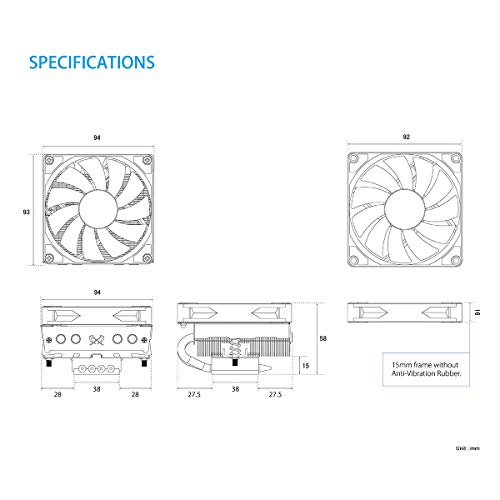 Dimension: (W)94 x (D)93 x (H)58mm, Weight: 350g, Fan size: 92 x 92 x 15mm(Upgradable for 25mm thick fan)
